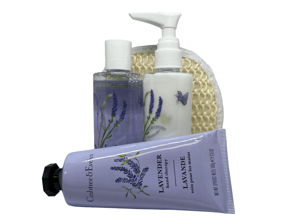 CRABTREE & EVELYN 3pc Lavender Hand Therapy Body Wash And Lotion Essentials Collection. Set cleanses and moisturizes skin