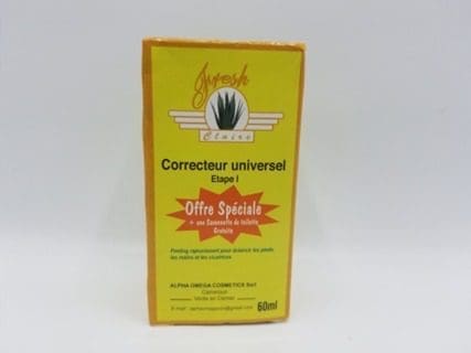 Fresh Claire Universal Corrector – Step 1 is a rejuvenating and lightening solution designed to brighten areas such as feet, hands, and scars. This corrective formula, created by ALPHA OMEGA COSMETICS Sarl, comprises key ingredients, including Sodium Hydroxide, Vitamin E, and Fruit Acids (Glycolic, Citric, Lactic, and Malic). It also contains Ethyl Alcohol and Distilled Water for effective results.
