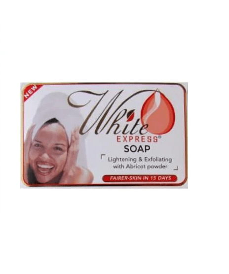 Discover the natural skin fairness benefits of White Express Lightening Soap 7oz / 200g. This herbal soap is formulated to provide natural skin fairness by removing blemishes, pigment scars, and sunburn spots within approximately 15 days of use, when used according to directions. It exfoliates dry skin, allowing previously damaged cells to heal and promoting the growth of new, lighter, fairer, and fresher skin tone.